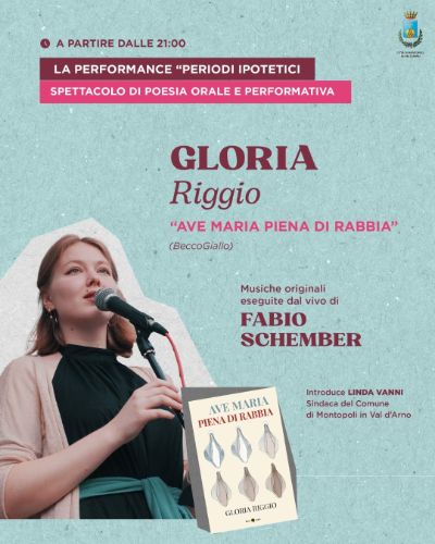 Sul palco la voce potente di Gloria Riggio, campionessa italiana di poetry slam, con la performance Periodi Ipotetici, tratta dal suo libro Ave Maria piena di rabbia (BeccoGiallo).