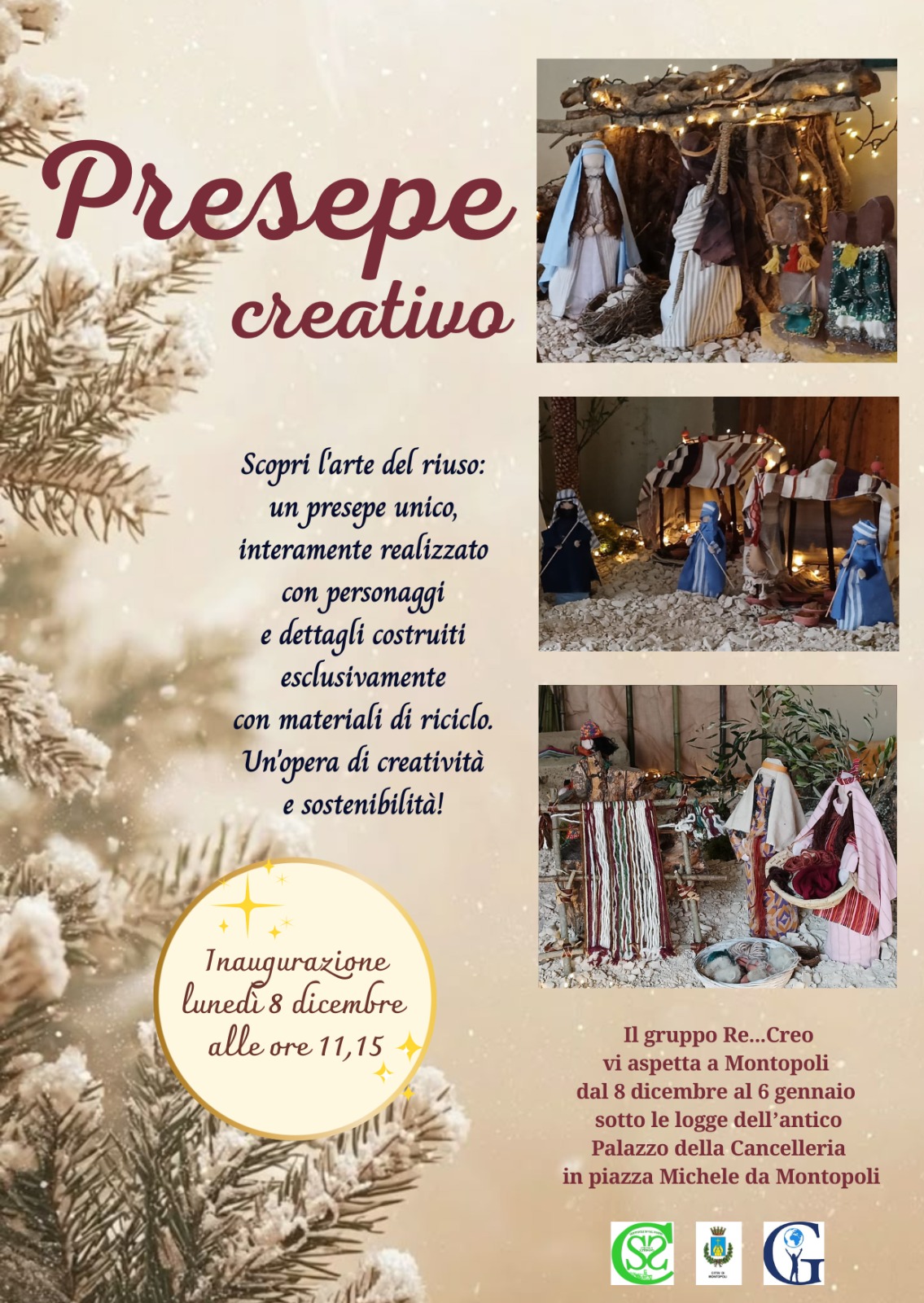 Lunedì 8 Dicembre alle ore 11.15 inaugurazione del " PRESEPE CREATIVO" a cura del gruppo Re-Creo di Montopoli in Val d'Arno.