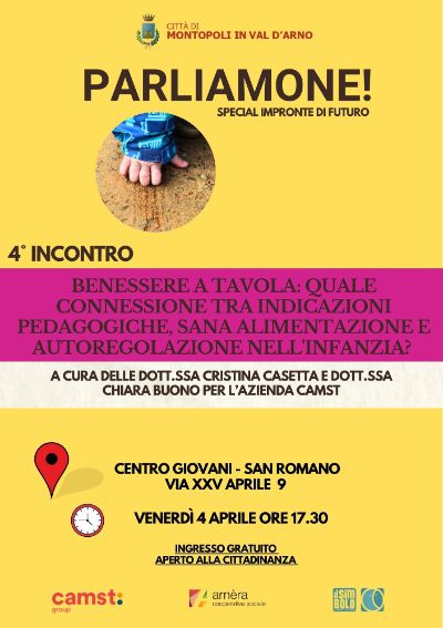 Il tema sarà il Benessere a tavola: quale connessione tra indicazioni pedagogiche, sana alimentazione e autoregolazione nell'infanzia? Appuntamento a cura delle dottoresse Cristina Casetta e Chiara Buono per l'azienda Camst. Ingresso gratuito e aperto alla cittadinanza.