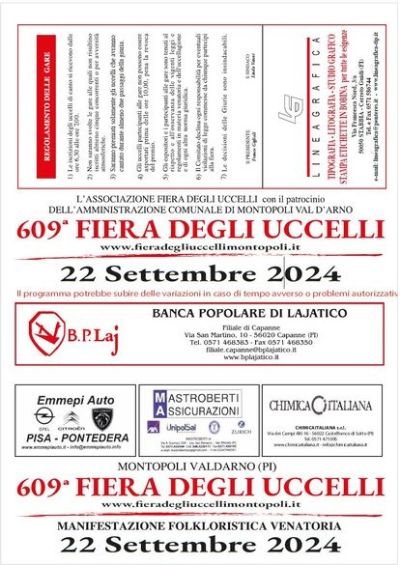 Montopoli in Val d’Arno è sempre stata nota per la sua Fiera degli Uccelli. La prima notizia che si ha di questa manifestazione è del 1360 quando venne inserita nello statuto comunale. Nel 1442 venne concesso di spostare il Mercato dei falconi dal giorno di S. Simone a quello di San Michele (29 settembre).