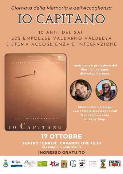 In occasione della Giornata della Memoria e dell'Accoglienza e per celebrare i 10 anni di attività del Sai SdS Empolese Valdarno Valdelsa (sistema accoglienza e integrazione) l'Amministrazione comunale di Montopoli insieme alla Sds organizza la visione del film Io Capitano di Matteo Garrone.