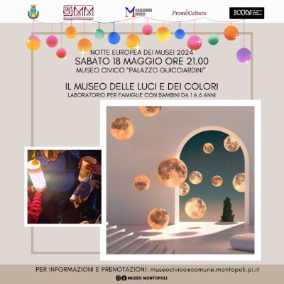 In occasione della Notte Europea dei musei 2024, sabato 18 maggio alle 21 il Museo Civico "Palazzo Guicciardini" ospiterà "Il Museo delle luci e dei colori" un laboratorio per famiglie con bambini da 1 a 6 anni.