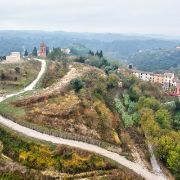 Corrisponde alla parte sommitale dov’era situato il castello medievale, l’area Archeologica del Bastione, attrezzata con un percorso didattico che permette di ammirare alcune porzioni delle murature in laterizio della rocca, i paramenti di alcuni edifici antichi situati lungo le pendici e una rara fornace medievale per laterizi che ha prodotto i mattoni utilizzati sia per le fortificazioni del colle sia per la costruzione della vicina pieve di Santa Maria Novella.