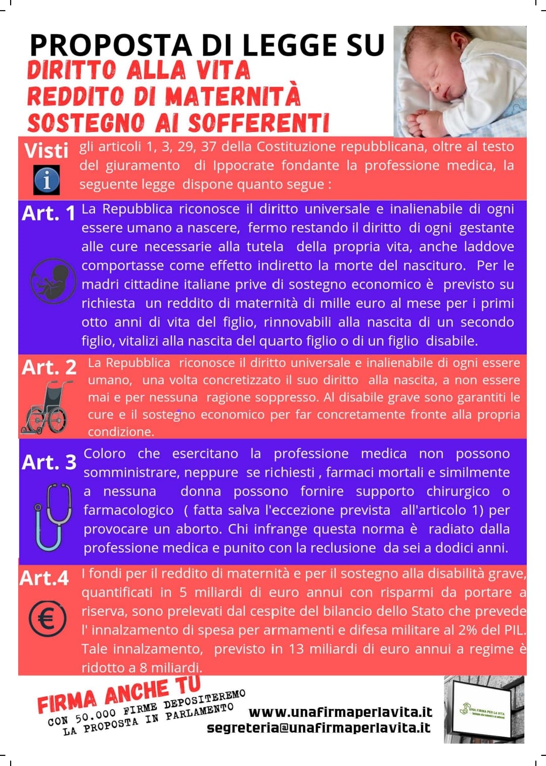 “Diritto alla vita, reddito di maternità, sostegno ai sofferenti”