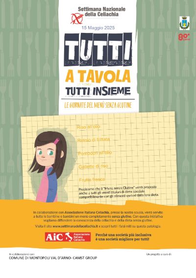 Il Comune di Montopoli in Val d'Arno aderisce all'iniziativa, in collaborazione con l'Associazione Italiana Celiachia, è stata organizzata una giornata speciale con un menù senza glutine in tutte le scuole comunali. L'iniziativa ha l'obiettivo di sensibilizzare sulla celiachia e sulla dieta senza glutine. Un’occasione per diffondere la conoscenza su questi argomenti e per tutelare un diritto indispensabile dei bambini celiaci: la loro completa e corretta integrazione nel contesto scolastico.